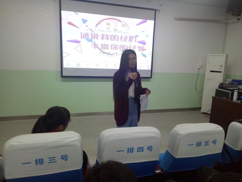 为进一步推动学风建设,让大一新生尽快融入大学生活,明确奋斗目标,车辆工程学院于10月14日19:00在北447举办“交心相传,源流各届”交流会。2016-2017学年国家奖学金获得者刘雨萱同学和车辆工程学院18级新生参加了此次交流活动。
