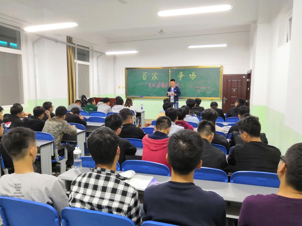 为锻炼同学们的语言与表达能力,展示当代大学生的风采。车辆工程学院于10月11日19:00在北415举行“百家争鸣”脱口秀。活动以“自执矛盾圆我说”为主题进行。
