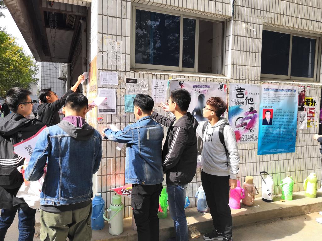 为美化校园环境,增强学生的环境保护意识。车辆工程学院志愿者中队于10月23日12:20组织学生党员开展清洁校内小广告志愿者活动。