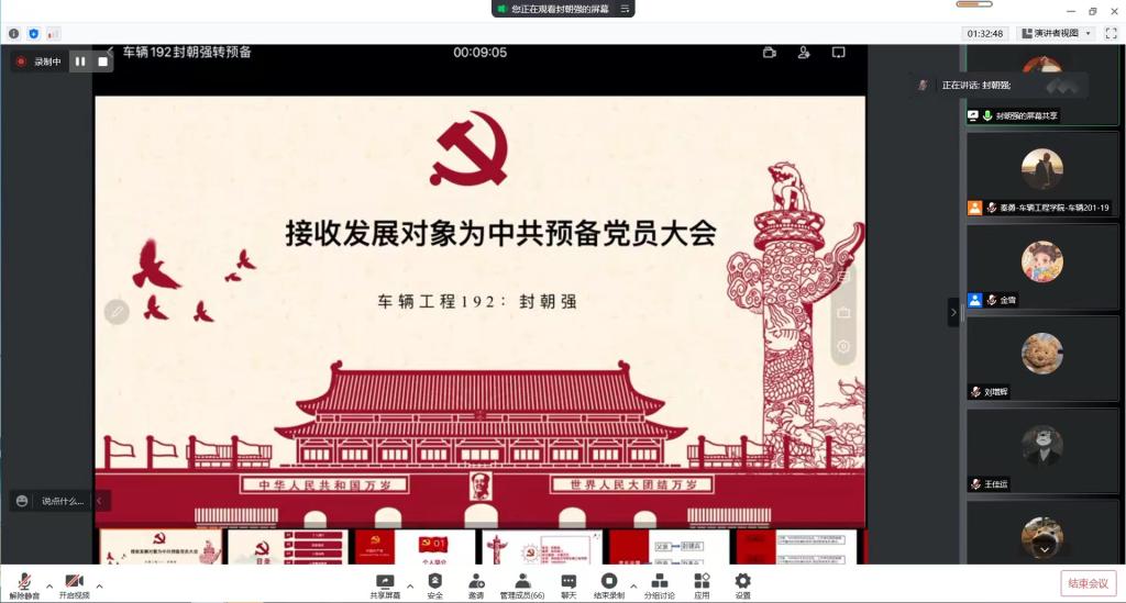 近日,车辆工程学院学生第一、二、三党支部分别召开接收发展对象为中共预备党员的支部大会,会议分别由学生第一党支部书记金雪、学生第二党支部书记于思月、学生第三党支部书记刘雨辰主持。全体学生党员参会,对张洺等23名发展对象是否能发展成为中共预备党员进行讨论与表决。