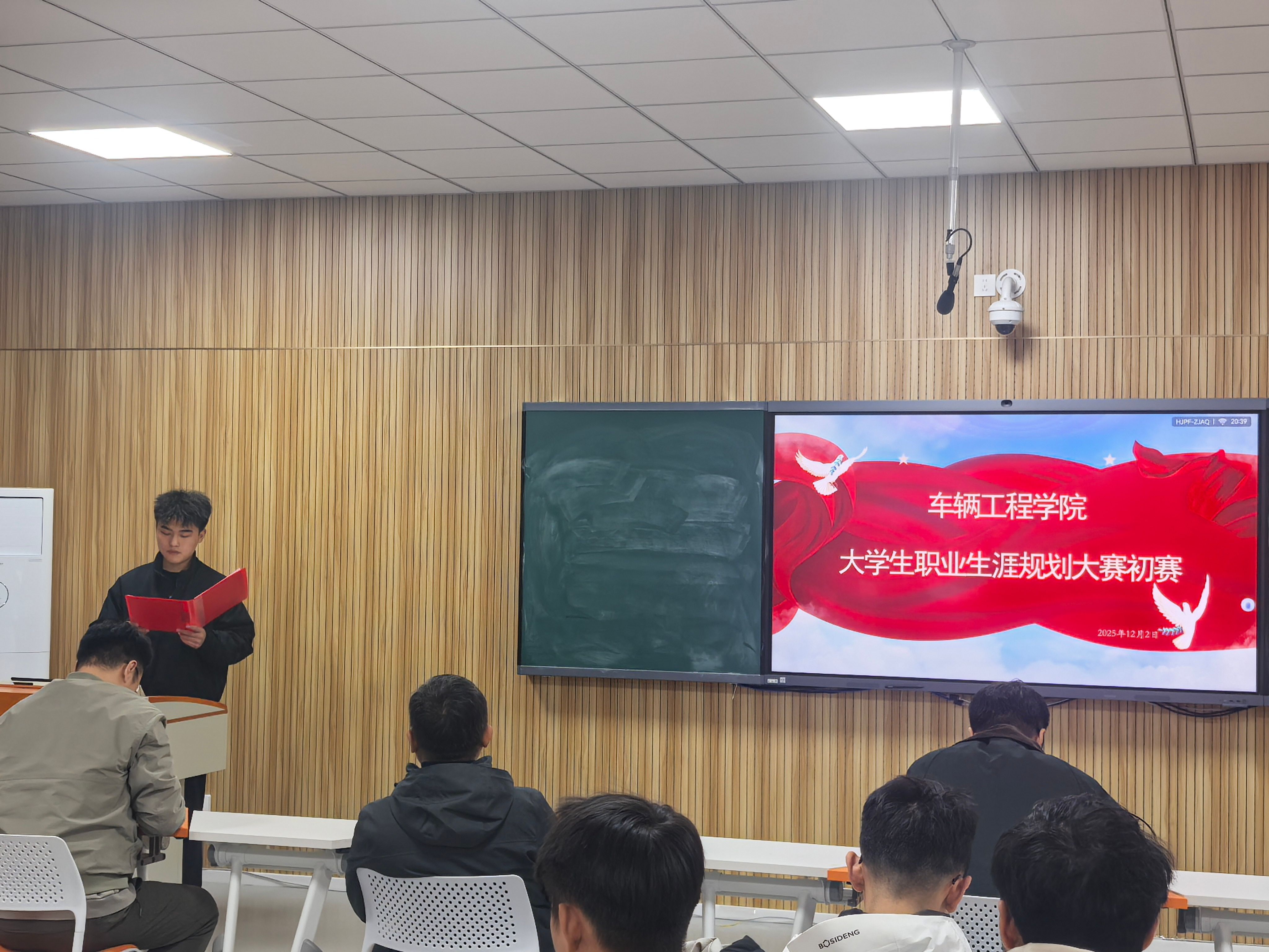 为深入贯彻立德树人根本任务,引导广大学子科学树立职业发展目标,提升就业核心竞争力,12月2日,车辆工程学院在4211教室成功举办第三届职业规划大赛。学院党总支书记周小勇、学工办副主任李艺、团总支书记任静、辅导员段元博出席并担任评委,各年级学生代表到场观摩。