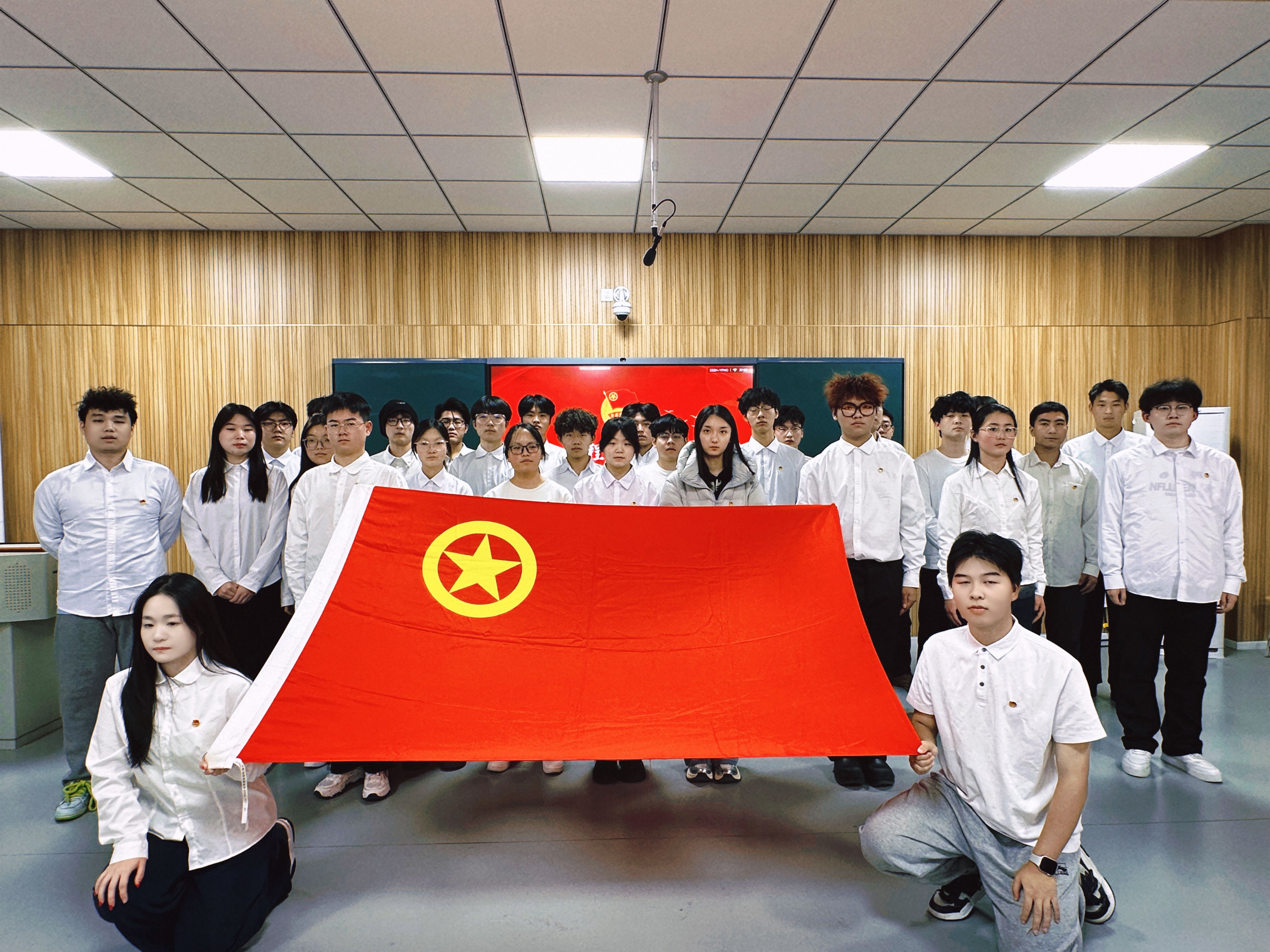 在庄严的团旗前,19名新团员进行了集中宣誓,表达了拥护团的纲领、遵守团的章程、履行团员义务的坚定决心。宣誓完毕后,由老团员代表为新团员逐一佩戴团徽。