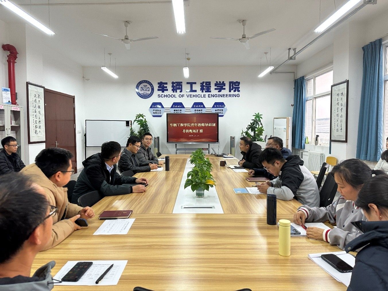 12月12日下午,车辆工程学院组织开展2025年青年教师导师制考核现场汇报工作。学院考核小组成员、全体被考核青年教师及导师参加会议。